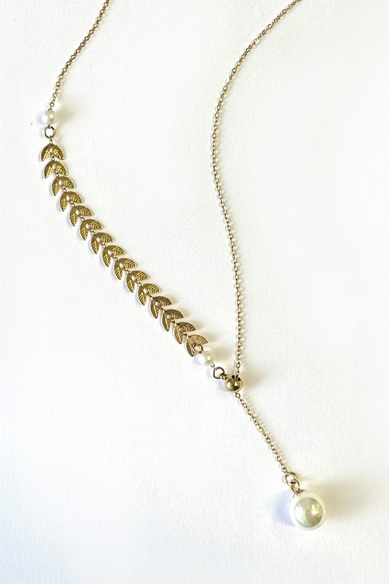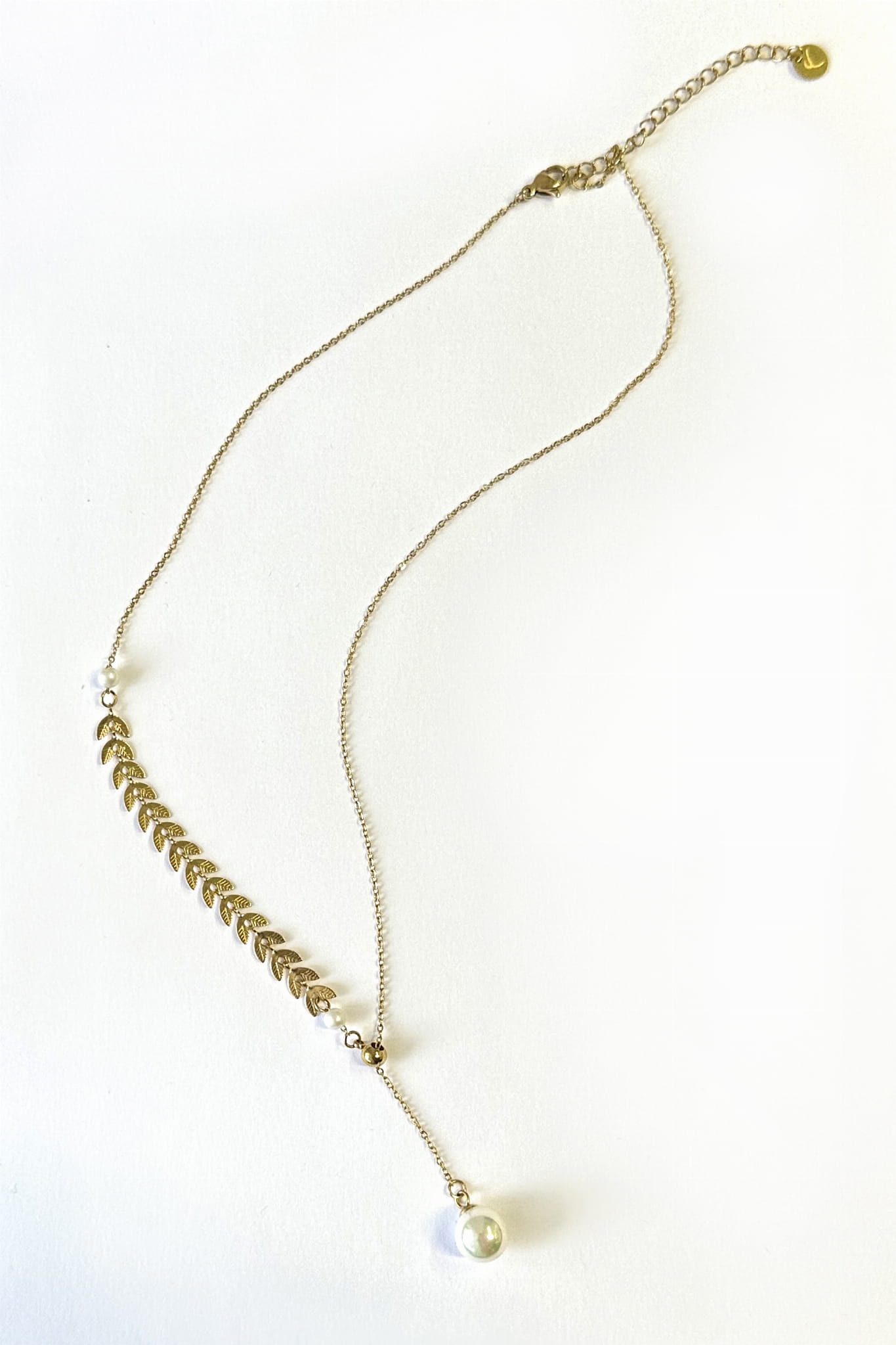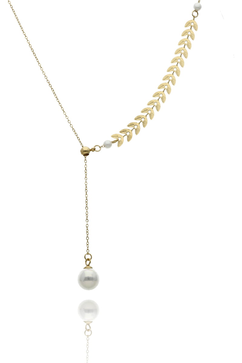 Ponadczasowy, elegancki naszyjnik wykonany ze stali szlachetnej pozłacanej, która zapewnia trwałość i luksusowy wygląd. Naszyjnik ozdobiony jest subtelnymi liśćmi oraz naturalną perłą shell, zawieszoną na końcu łańcuszka. Dzięki zastosowaniu stali szlachetnej, biżuteria jest nie tylko piękna, ale również trwała i odporna na uszkodzenia. To idealny wybór na wyjątkowe okazje, jak i codzienne stylizacje, które potrzebują subtelnego, ale wyrazistego akcentu.