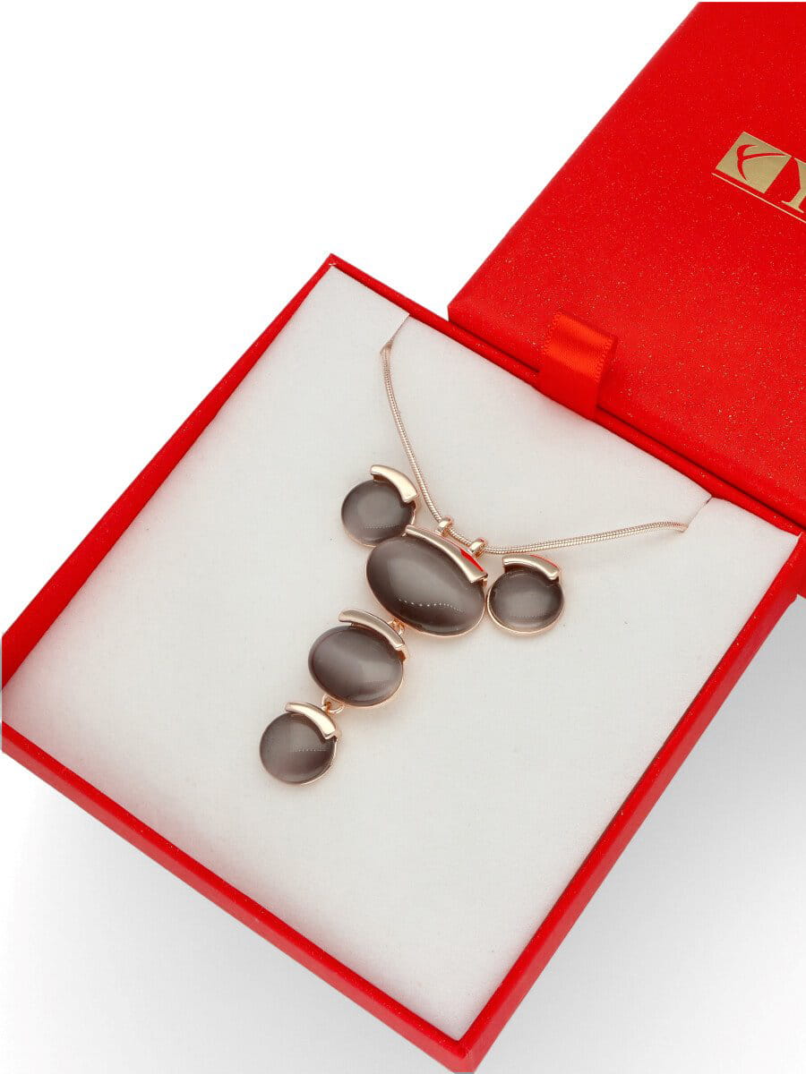 Mglisty Poranek – komplet biżuterii, który urzeka subtelnością i elegancją. Trójstopniowa zawieszka naszyjnika i dopasowane kolczyki wykonane z kwarcu (kocie oko) delikatnie odbijają światło, tworząc efekt tajemniczej głębi, niczym poranna mgła otulająca krajobraz. Ciepłe, złociste wykończenie antyalergicznego metalu pięknie komponuje się z mlecznoszarym odcieniem kamieni, dodając całości wyrafinowanego charakteru. Komplet zapakowany jest w ekskluzywne pudełko, co czyni go idealnym pomysłem na prezent. Mglisty Poranek to biżuteria dla kobiet ceniących klasyczną elegancję z nutą nowoczesności.