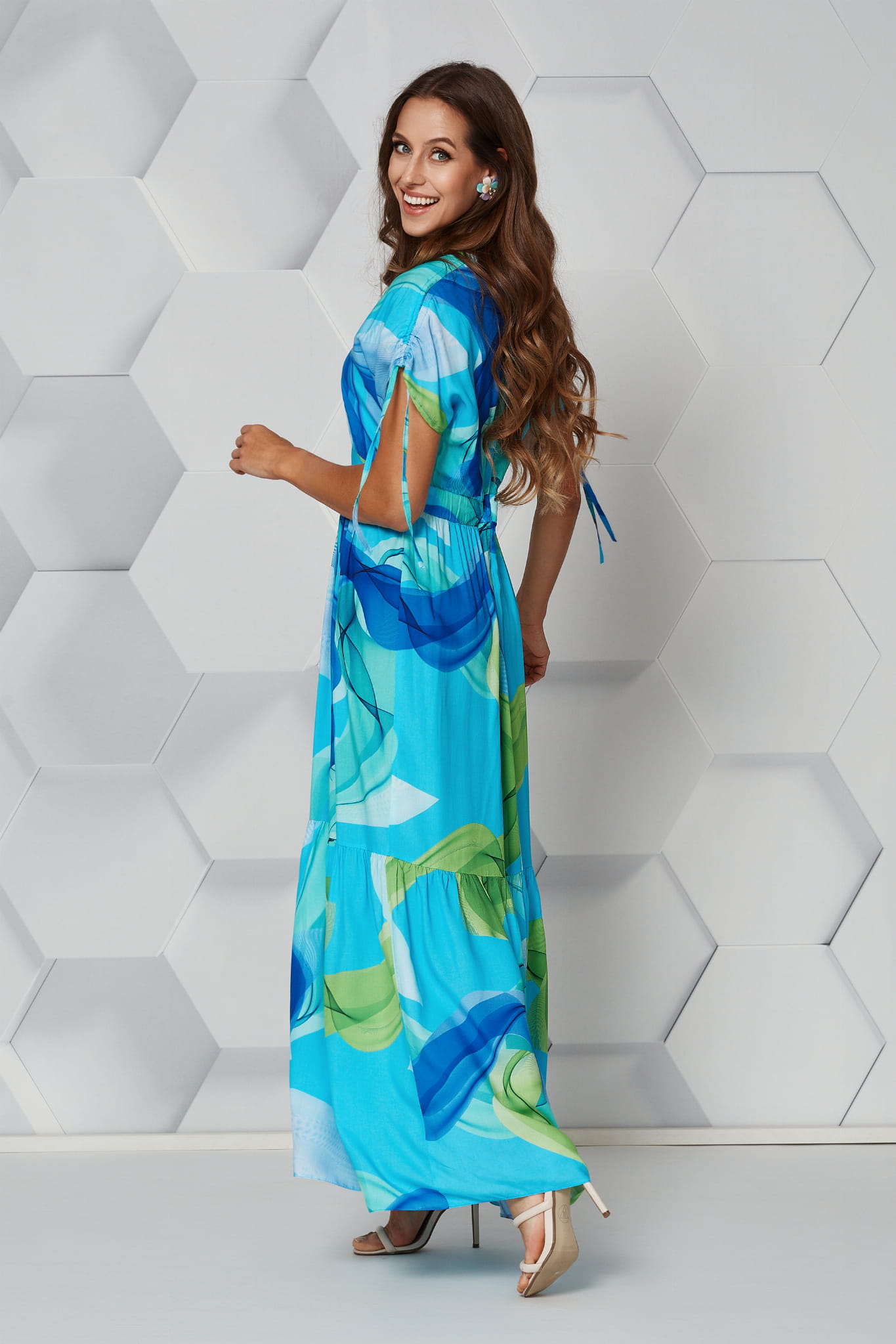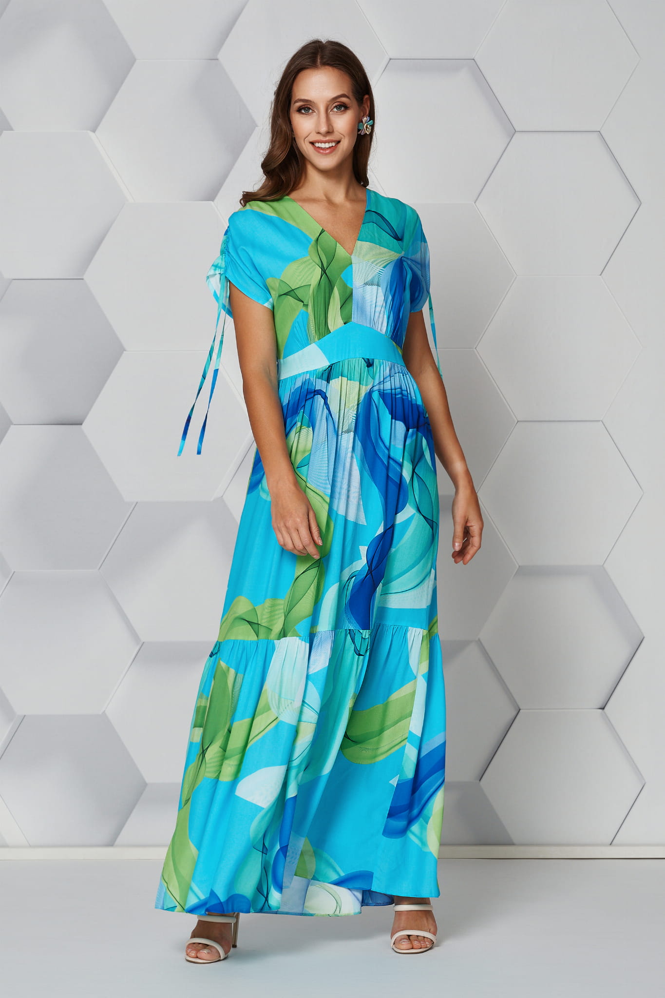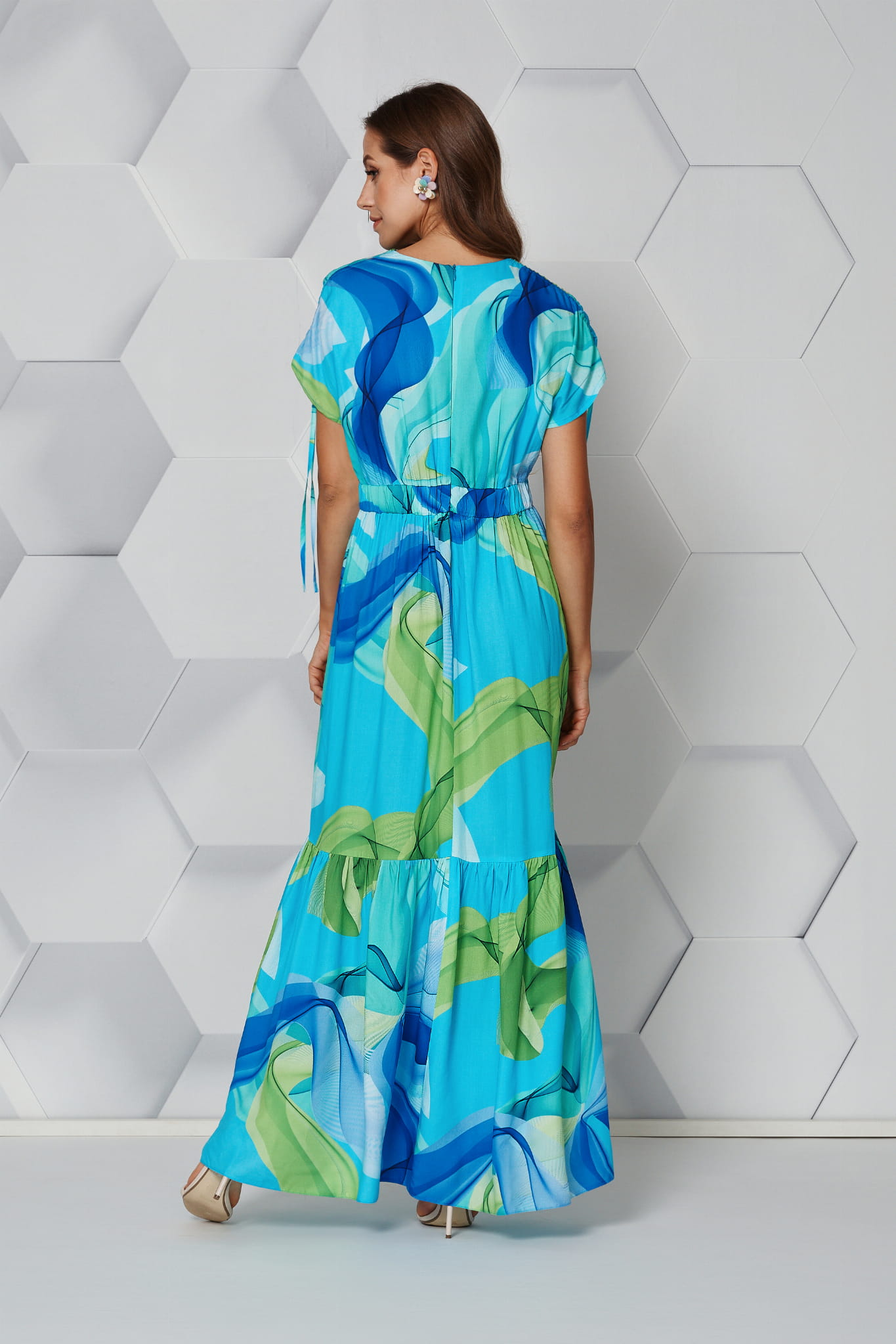 Sukienka maxi Gilia we wzór niebiesko-zielony