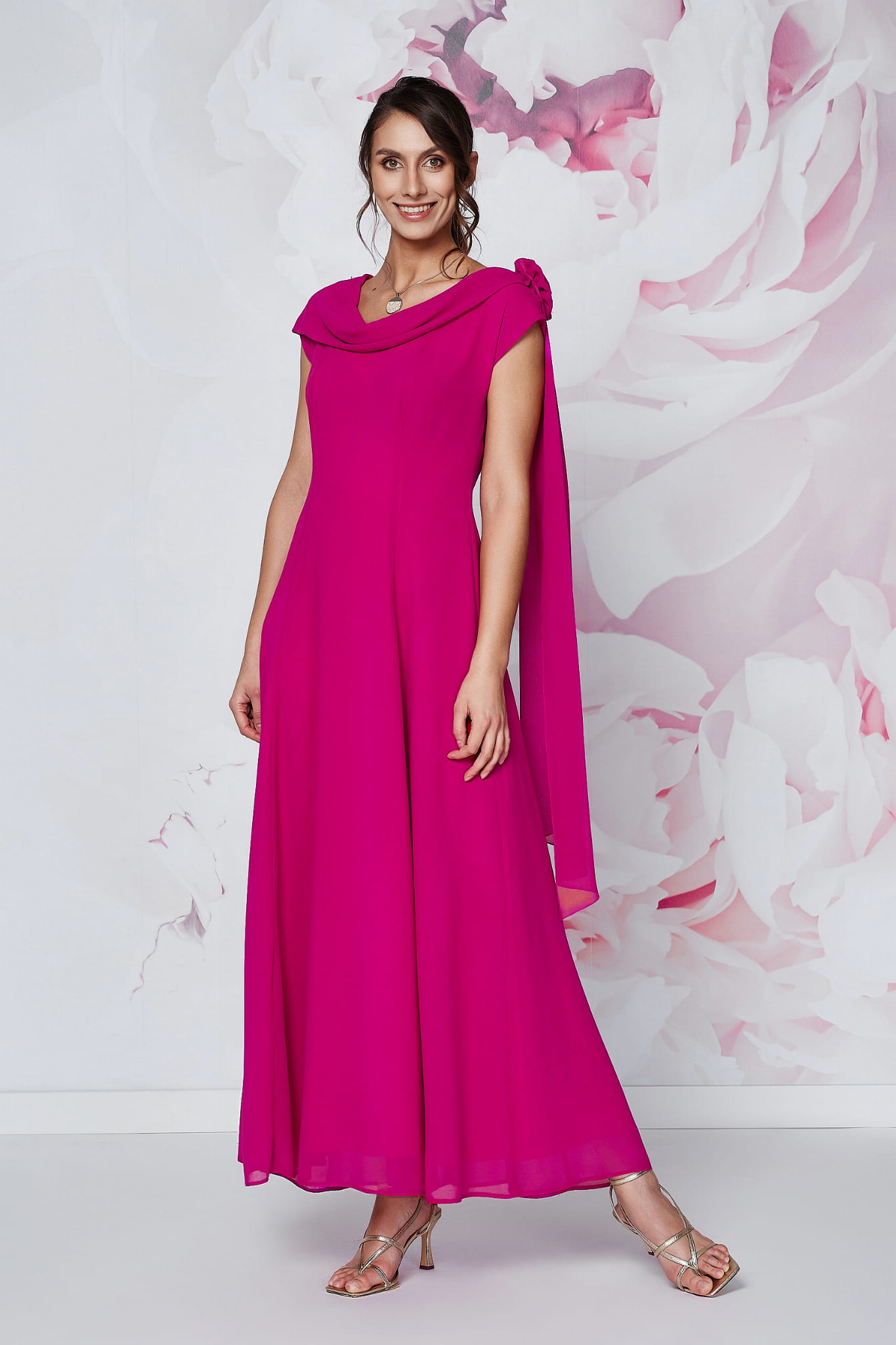 Suknia Amalfi w kolorze fuksji to wybór dla kobiet, które nie boją się koloru i chcą czuć się wyjątkowo. To kreacja, która łączy w sobie lekkość szyfonu z pięknym kolorem, tworząc zestawienie idealne na najważniejsze uroczystości w roku.