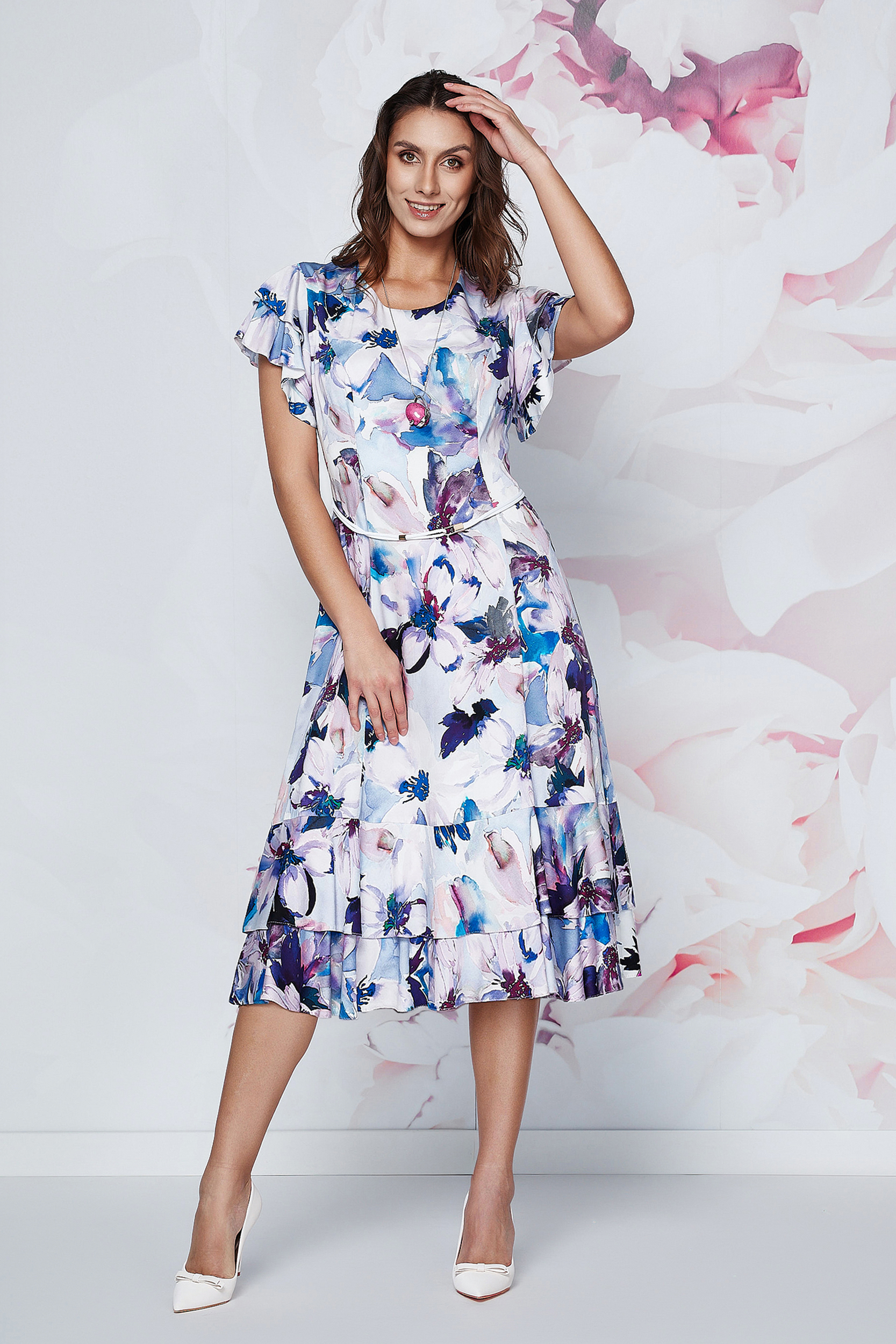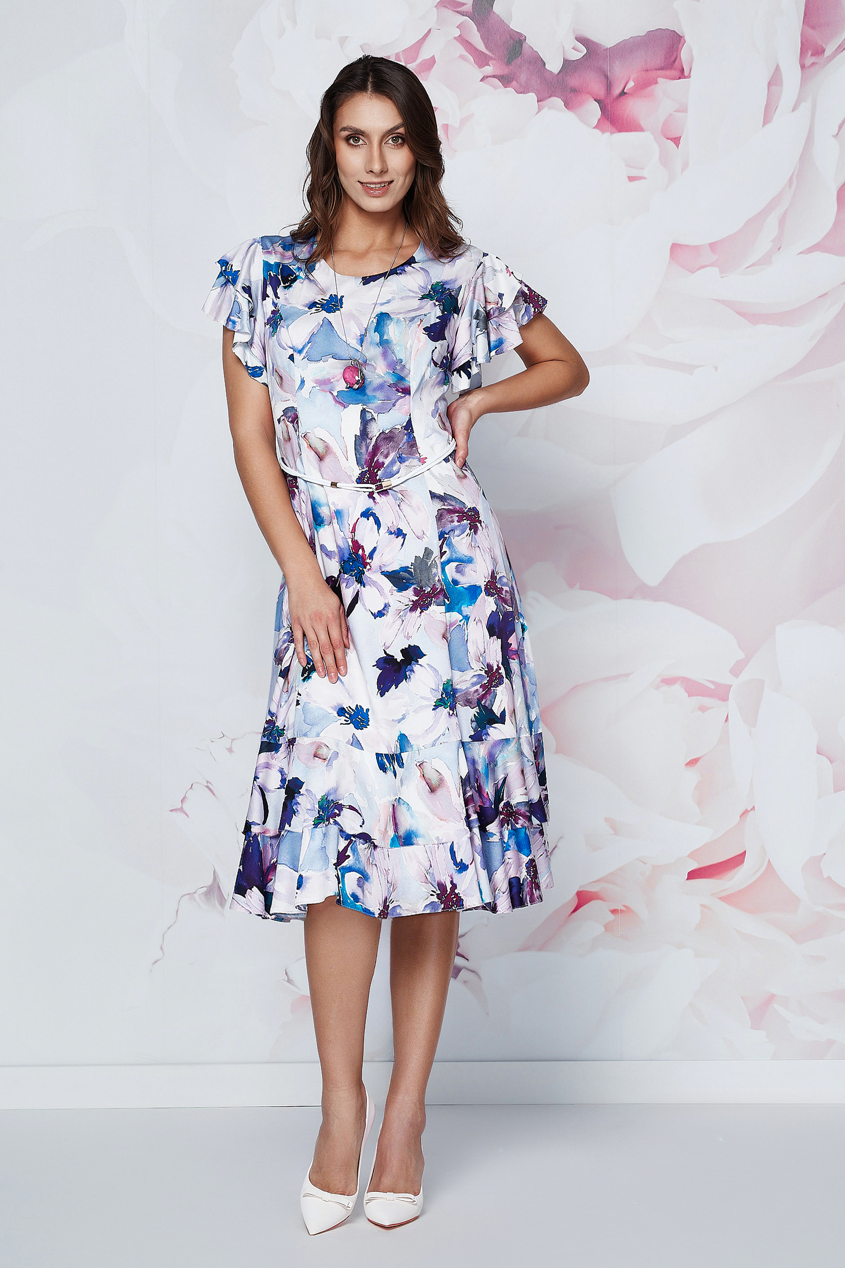 Sukienka midi Batumi z wiskozy w fioletowo-niebieskie kwiaty