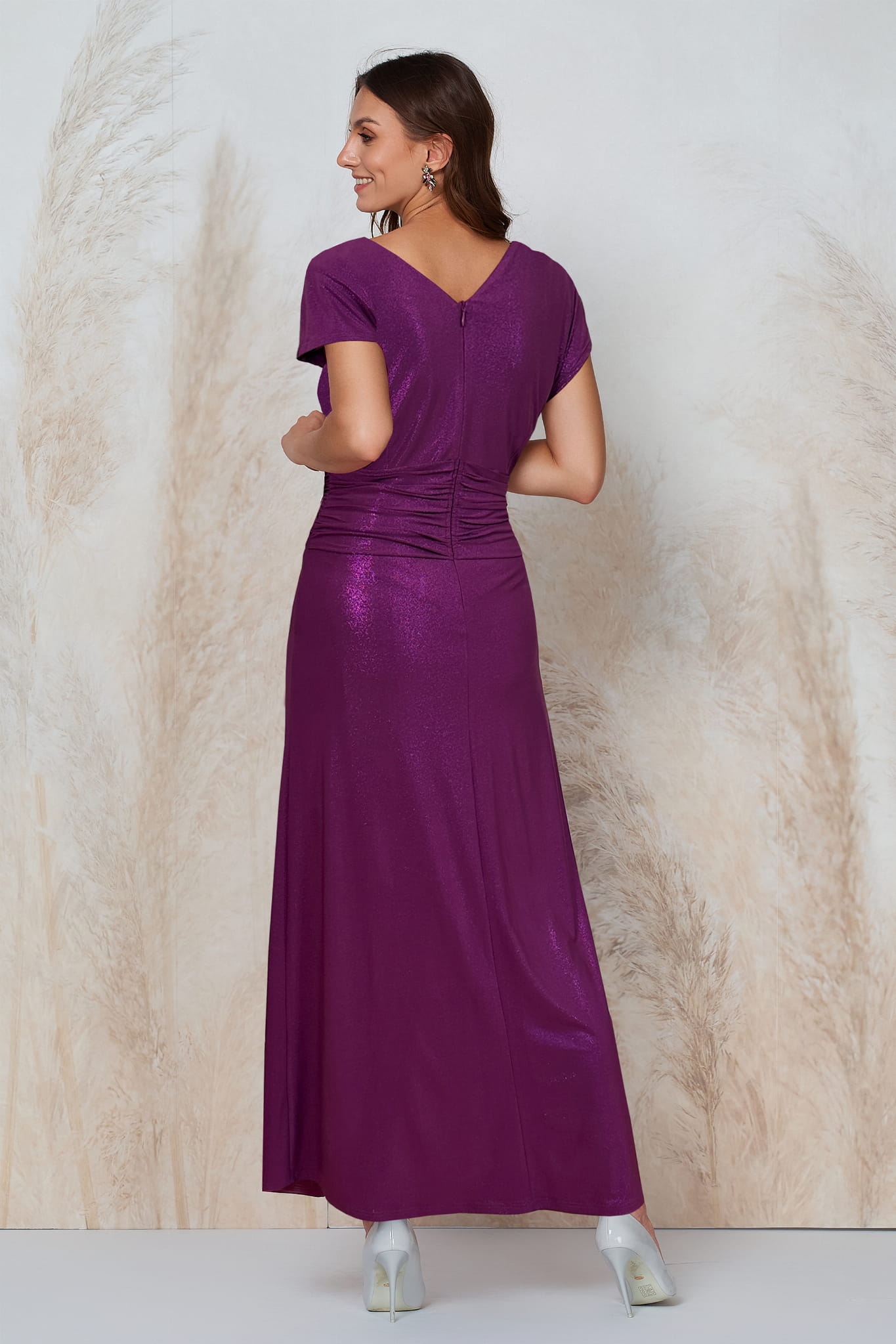 Odkryj magię wieczoru w sukni, która łączy w sobie szyk z blaskiem. Model Hermina w odcieniu głębokiego burgundu to propozycja dla kobiet, które pragną czuć się pewnie, zmysłowo i niezwykle elegancko. Wykonana z wysokiej jakości tkaniny z subtelnym, mieniącym się wykończeniem, suknia pięknie pracuje w świetle, nadając Twojej sylwetce magnetycznego uroku.