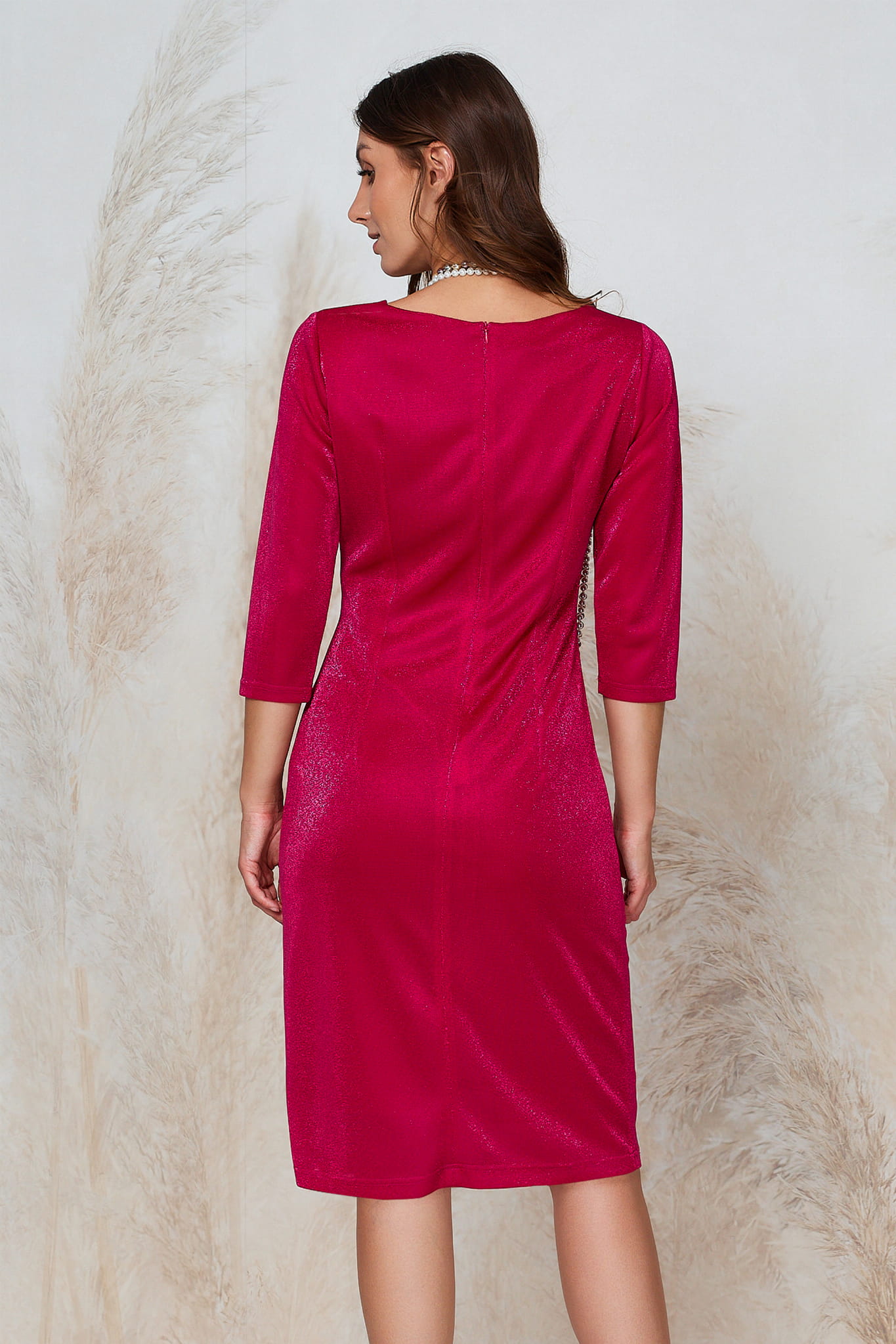 Przygotuj się na to, by olśnić i poczuć się wyjątkowo! Sukienka Peonia to kwintesencja elegancji połączonej z nowoczesnym, kobiecym akcentem. Wykonana z luksusowej dzianiny w odcieniu głębokiego, energetyzującego różu, subtelnie przeplatanej migoczącą nitką, która dodaje jej niepowtarzalnego blasku. Ten model został zaprojektowany, by nie tylko przyciągać wzrok, ale przede wszystkim podkreślać atuty Twojej sylwetki, zapewniając jednocześnie niezrównany komfort noszenia.