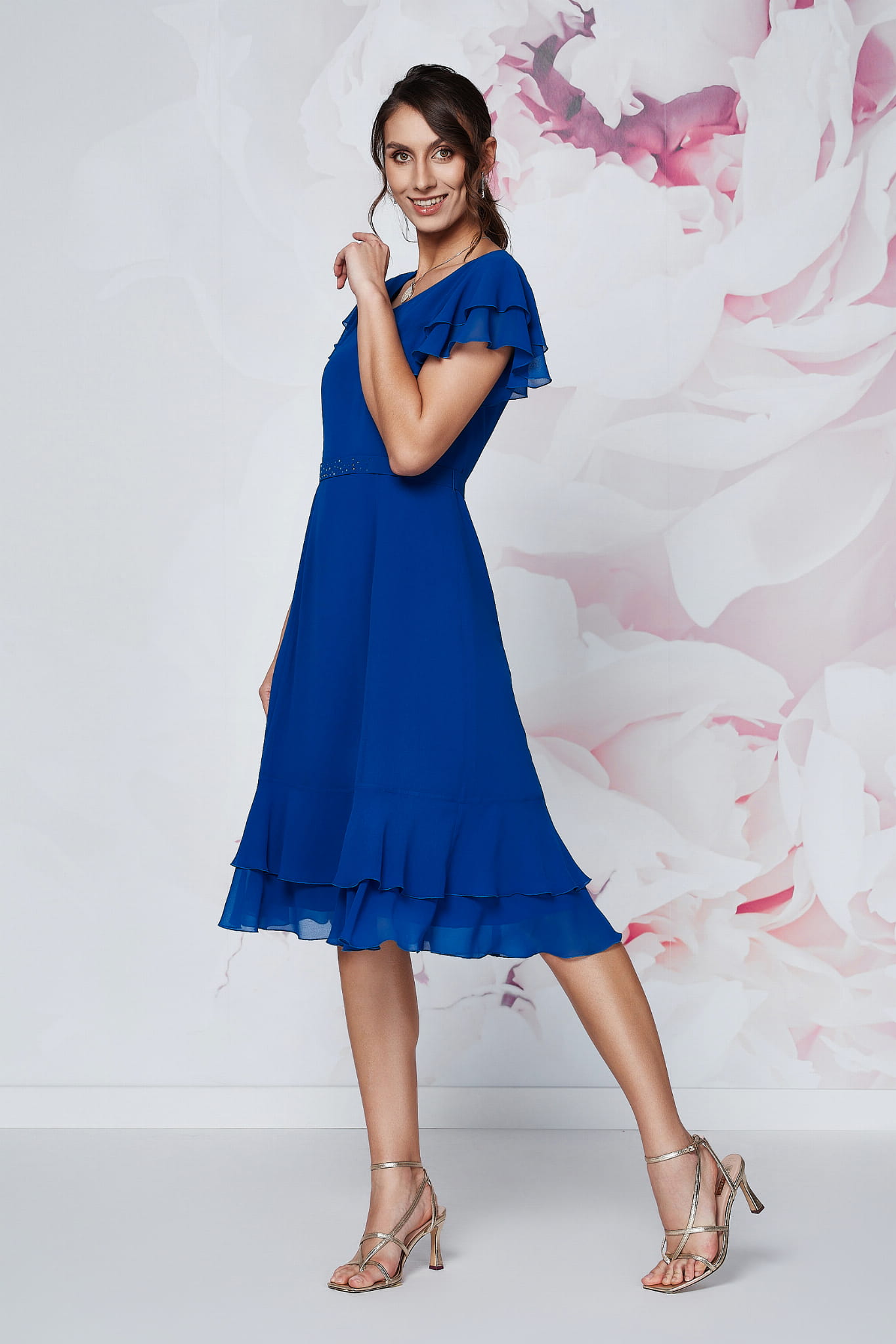 Przedstawiamy sukienkę Batumi w głębokim, nasyconym odcieniu szafiru. To kolor, który kojarzy się z elegancją, spokojem i profesjonalizmem, dlatego jest jednym z najchętniej wybieranych barw na uroczystości rodzinne oraz oficjalne gale. Jeśli szukasz kreacji, która podkreśli Twoją pewność siebie i doda spojrzeniu głębi, ten model jest stworzony dla Ciebie.