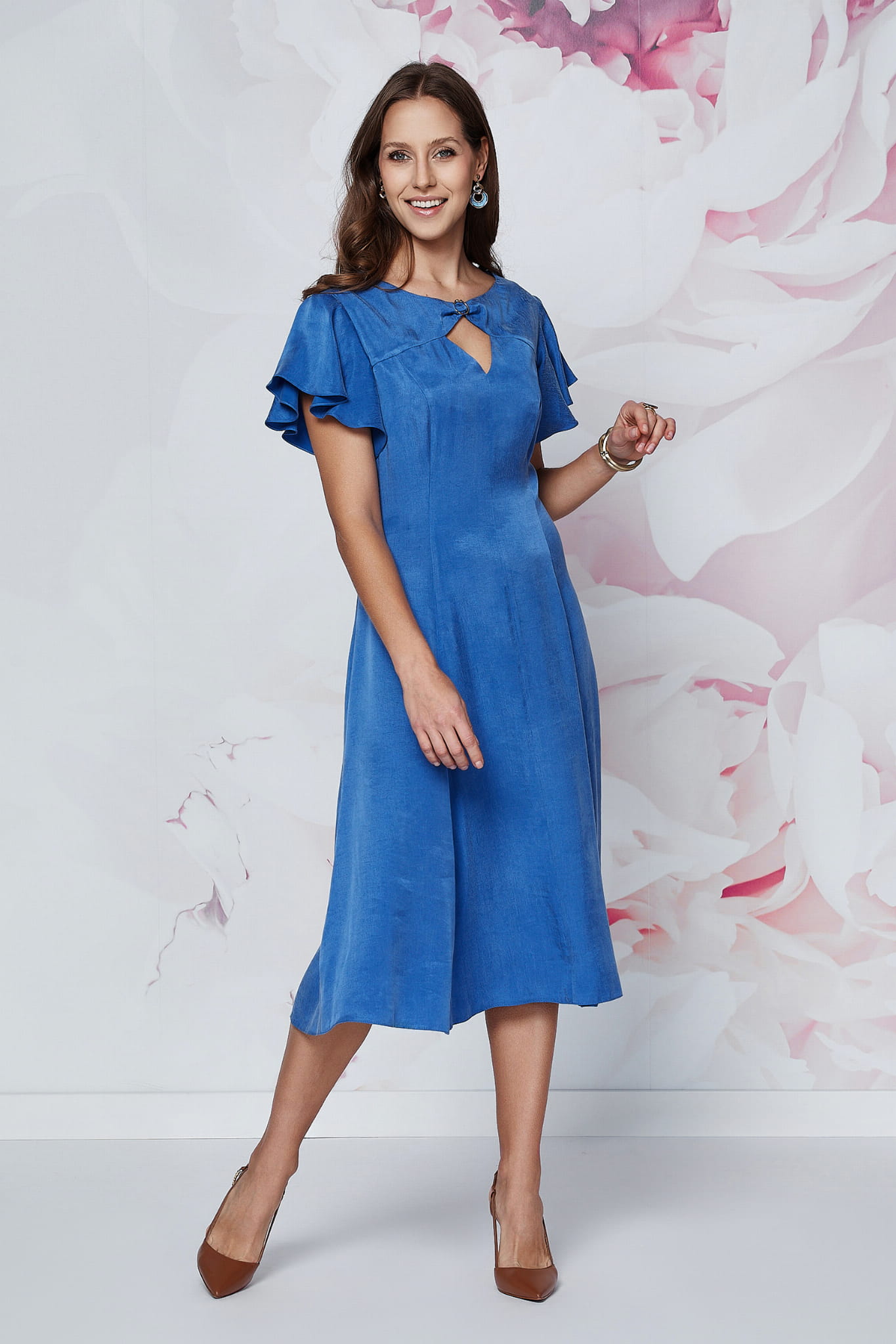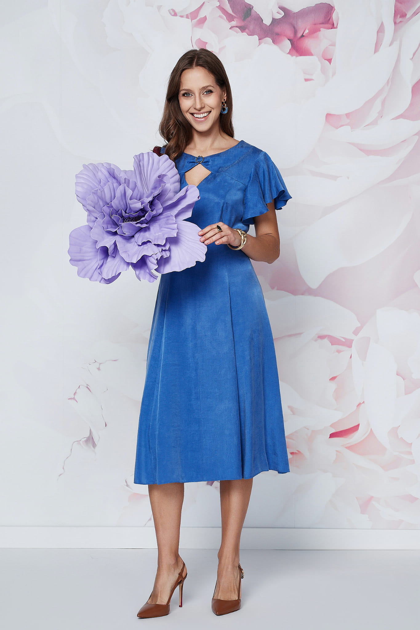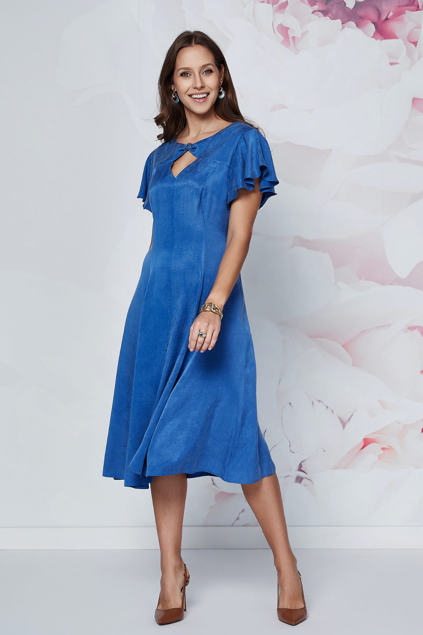 Sukienka wizytowa midi Penelope niebieska z lyocellu