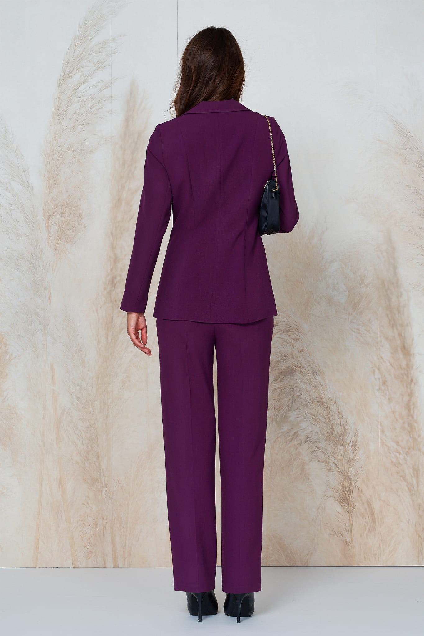 Zakiet Korso połaczony ze spodniami Korso to idealna propozycja na spotkania biznesowe, uroczystości i nawet wieczorne wyjścia. Oryginalny śliwkowy odcień to idealna alternatywa dla klasycznych kolorów, która przyciąga uwagę i dodaje pewności siebie.